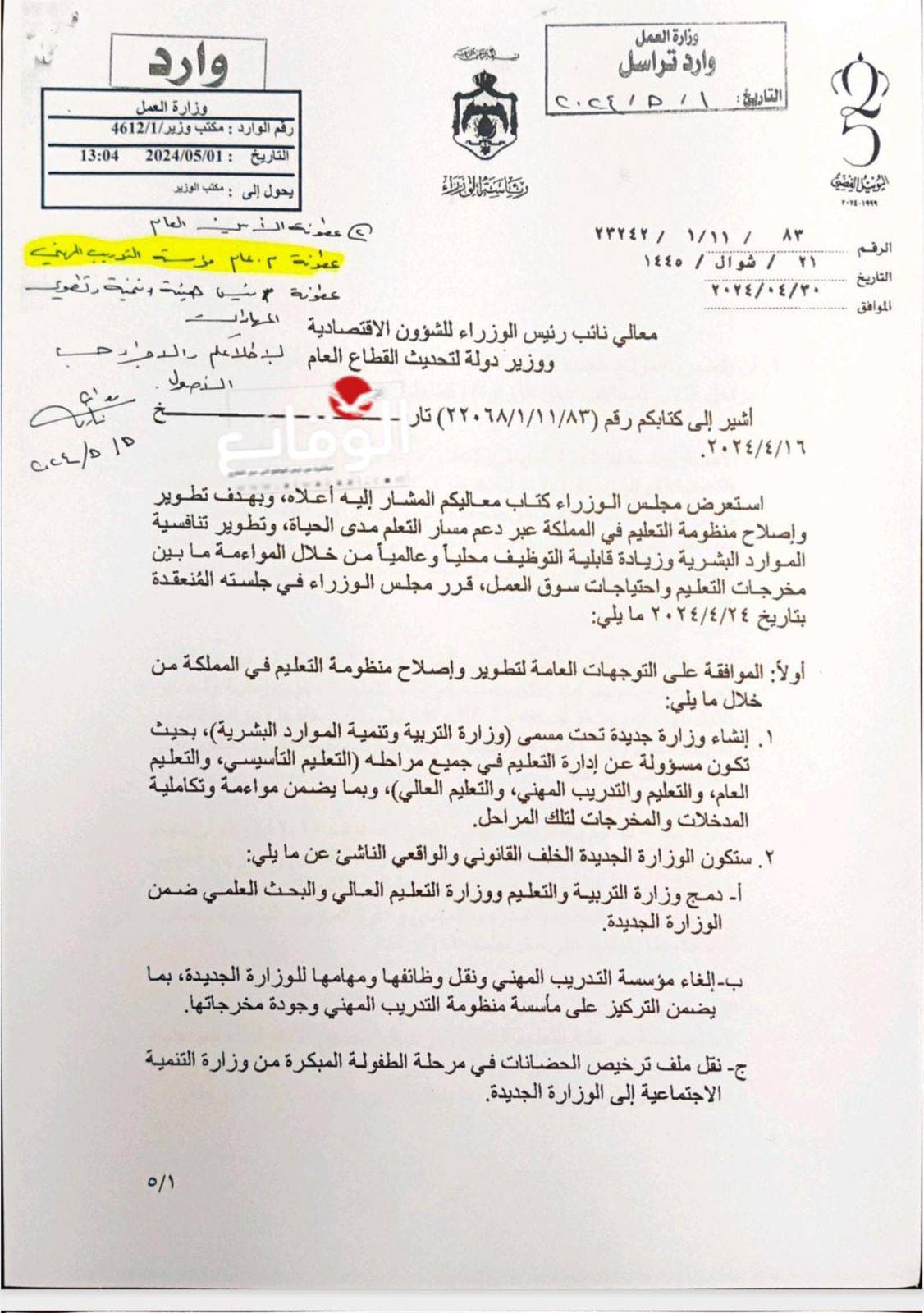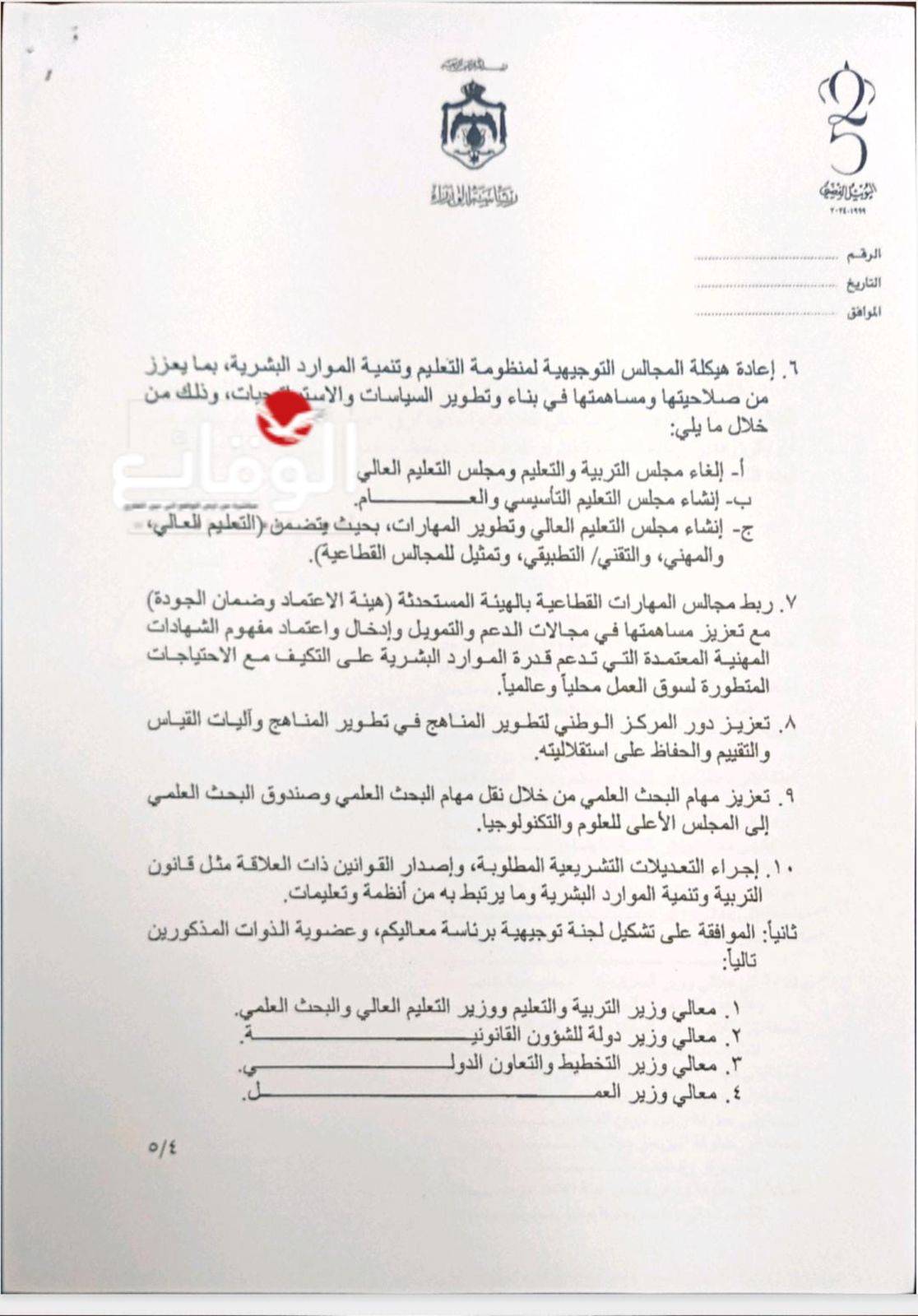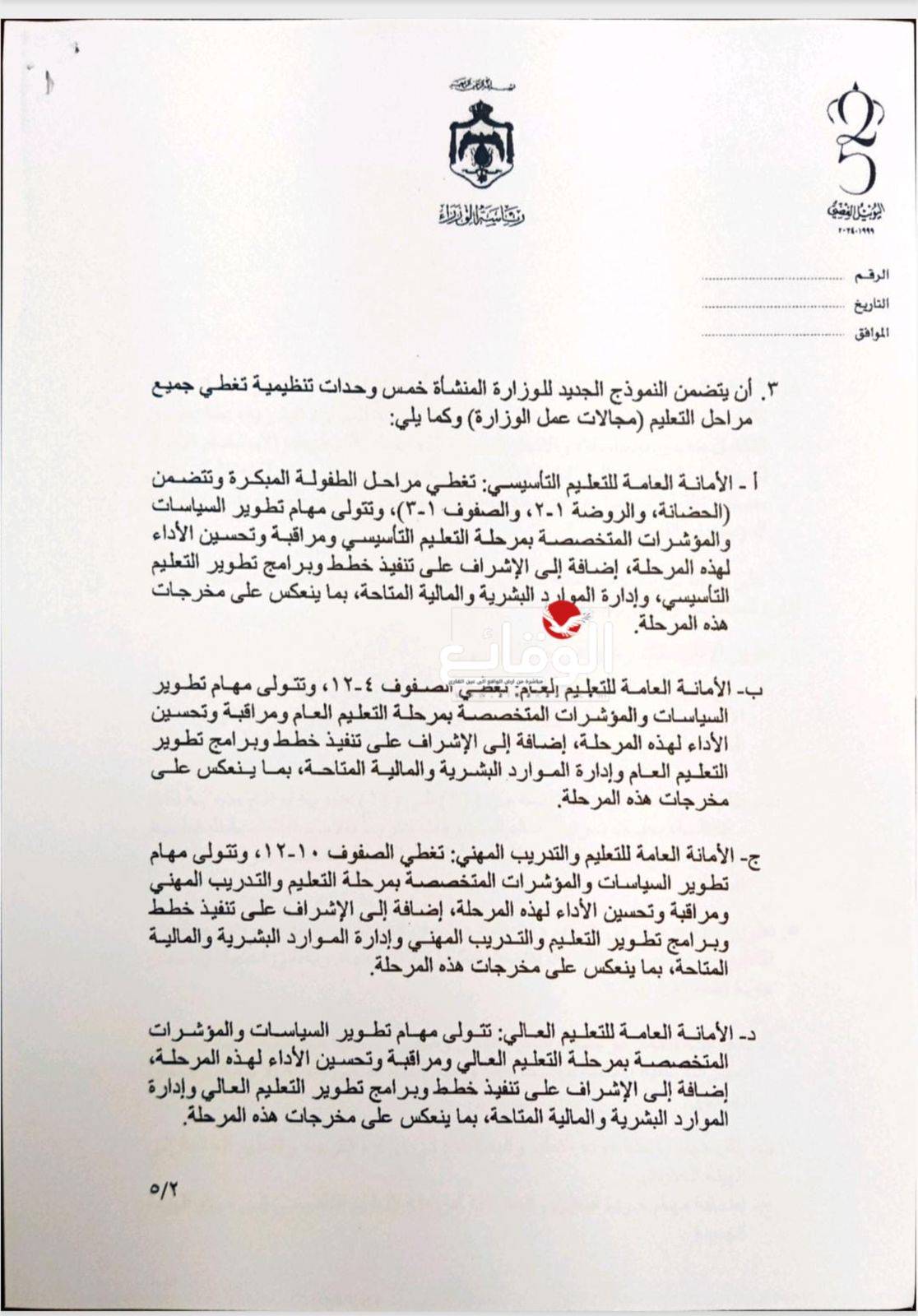 الاردن.. دمج وزارتي "التربية" "والتعليم العالي" (وثائق وتفاصيل)