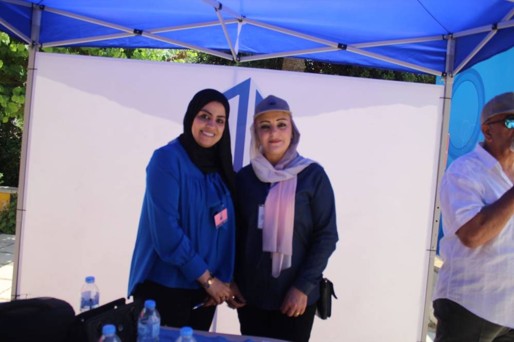 الددكتور عبدالرحمن الهندي رئيس لجنة العلاقات العامة، والسيد حسين الشياب رئيس لجنة الشباب والمرأة، والسيدة ياسمين أبو سيلة نائب رئيس لجنة الشباب والمرأة، والسيدة إسلام كريشان أمين سر لجنة العلاقات العامة، والسيدة نداء بيدس من المكتب الإعلامي، والصحفي جمال خليفة رئيس المكتب الإعلامي.