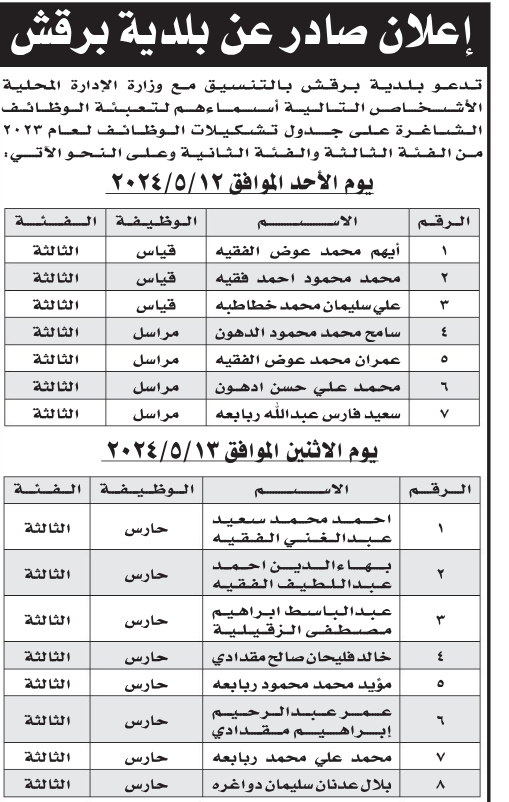 بالأسماء .. وظائف شاغرة ومدعوون للامتحان التنافسي