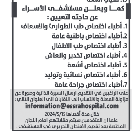 كما أعلنت مؤسسات حكومية وشركات خاصة عن وظائف شاغرة .