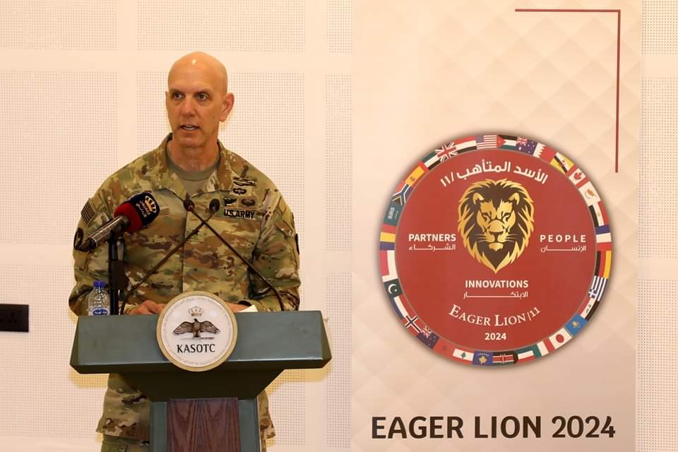 وقال مدير التدريب العسكري العميد الركن حسن الخالدي في كلمة له خلال المؤتمر: اسمحوا لي أن أرحب بكم جميعاً، وأشكركم على تلبية دعوتنا لحضور تمرين الأسد المتأهب، والذي سينفذ على أراضي المملكة الأردنية الهاشمية خلال الفترة من 12-23 ايار 2024 والتي تستقبل مثل هذه التمارين المشتركة منذ سنوات مع شركائنا في العالم والمنطقة من دول شقيقة وصديقة.