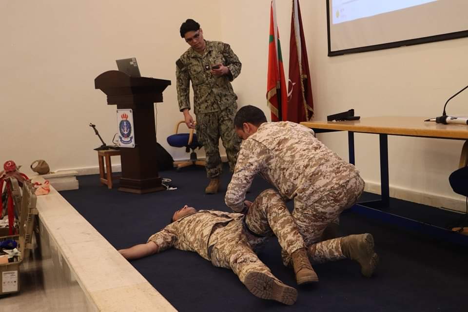 كما تم إلقاء محاضرات على مجموعة الغطاسين والضفادع البشرية بالتشارك مع الجانب الأمريكي بما يخص أمراض الغطس، وكيفية تشخيصها وأعراضها وطرق الوقاية منها.