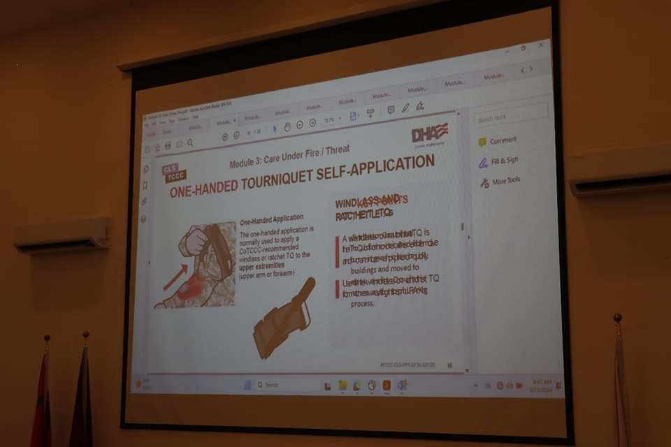 واشتملت الفعاليات على محاضرات طبية بالتشارك مع الخدمات الطبية الملكية وطب الميدان والقوات الأمريكية الصديقة، وتناولت هذه المحاضرات الاسعافات الأولية الجروح القطعية، قطع الأوردة والشرايين وكيفية التعامل مع المصاب.