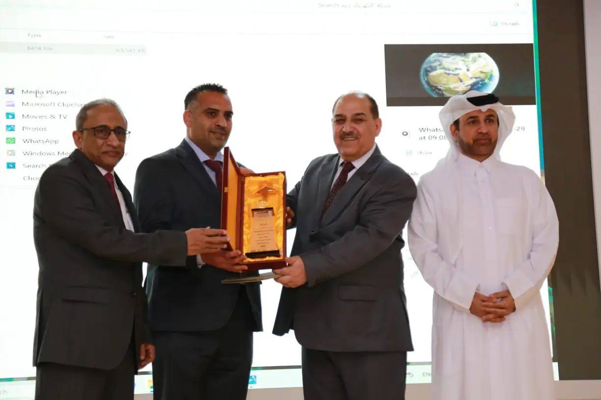 وتسلم الدرع نيابة عن كهرباء إربد نائب المدير العام للشؤون الإدارية والمالية طارق نصير من الأمين العام لمجلس الوحدة الاقتصادية العربية سعادة السفير محمدي أحمد الني.