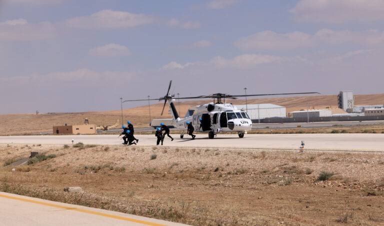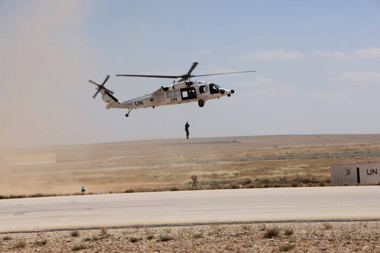 وتابع رئيس هيئة الأركان المشتركة الفعاليات التي اقامتها الوحدة والتي اشتملت على تطبيق المتحرك الذي تضمن إخلاء إصابة بالونش الجانبي من طائرة بلاك هوك بالتزامن مع توفير حماية جوية وأرضية من طائره بلاك هوك أخرى، والتعامل مع حريق نشب في احد مستودعات الوحدة للوقوف على استجابة فريق الرد السريع من خلال آلية إنقاذ متخصصة لمثل هذه العمليات، وسيارة إسعاف تابعة لمستشفى الخط الاول للوحدة مجهزة بطاقم طبي، إضافة إلى التعامل مع مركبة مشبوهة حاولت دخول معسكر الوحدة، وتعاملت وفقاً لقواعد الاشتباك المعمول بها في قوات حفظ السلام.