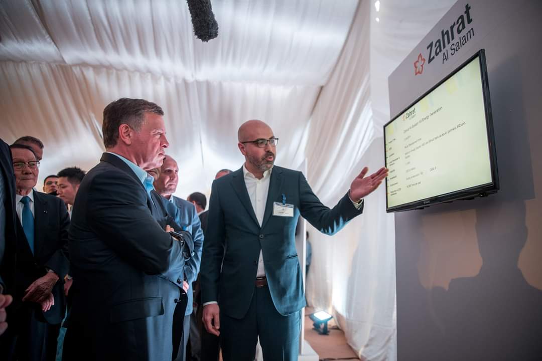 دشن جلالة الملك عبدالله الثاني، اليوم الأحد، محطة توليد الكهرباء من الطاقة الشمسية، التي تم إنشاؤها داخل حرم الديوان الملكي الهاشمي، وبقدرة توليدية 6ر5 ميجا واط.