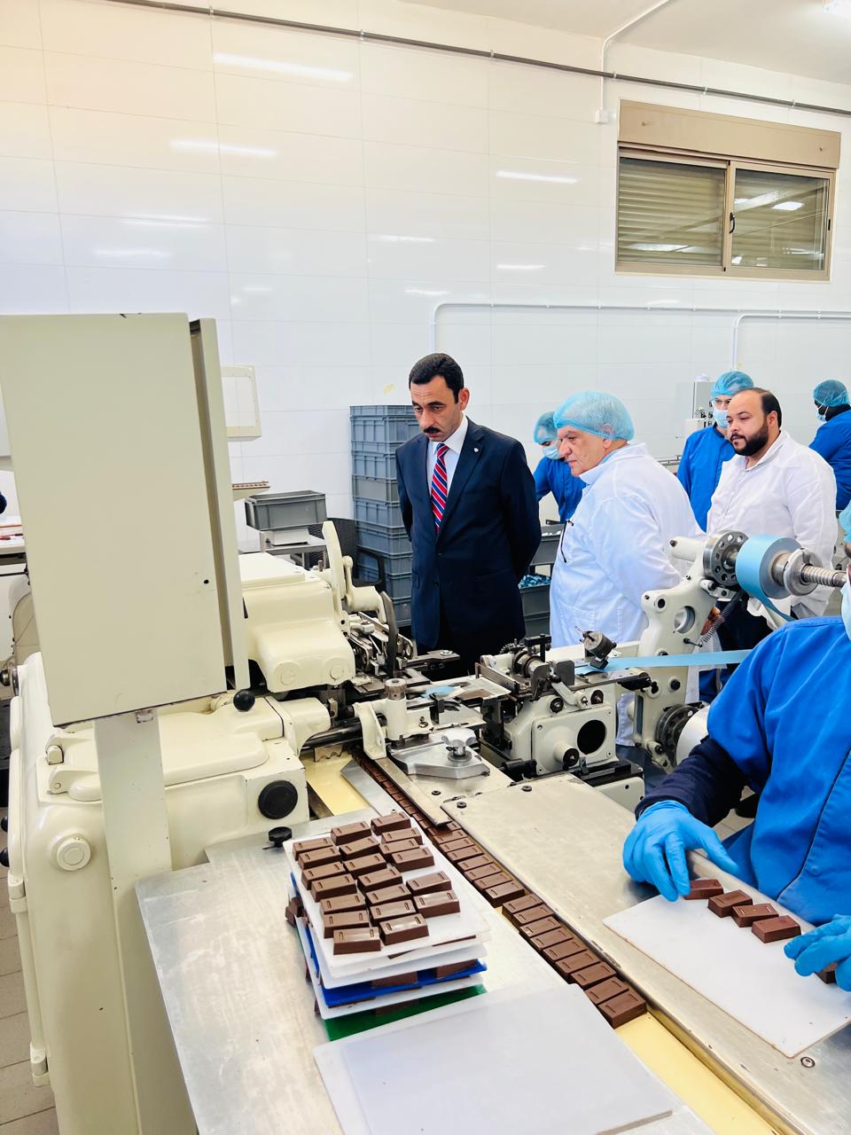 ‏‎واطلع مهيدات خلال الجولة على التقنيات الحديثة المستخدمة في إنتاج الشوكلاتة وفق أعلى معايير الجودة، مشيدا بالمستوى المتميز للمصنع كواحد من المشاريع الريادية في محافظة مادبا ومستوى الالتزام بممارسات التصنيع الجيد والاشتراطات الصحية خلال كافة مراحل سلسلة الإنتاج، مما يسهم في توفير منتج وطني متميز في السوق المحلي وفي أسواق التصدير الخارجية.