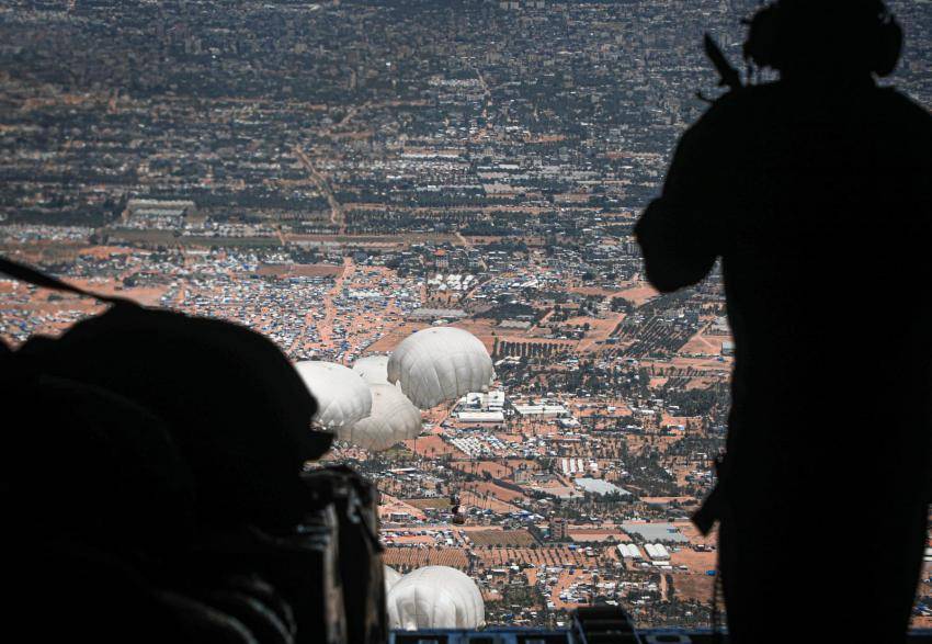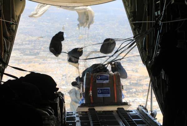 واشتملت الإنزالات الجوية على مساعدات إغاثية وإنسانية لمساندة الأهل في قطاع غزة، جراء الحرب الإسرائيلية المستمرة على القطاع.