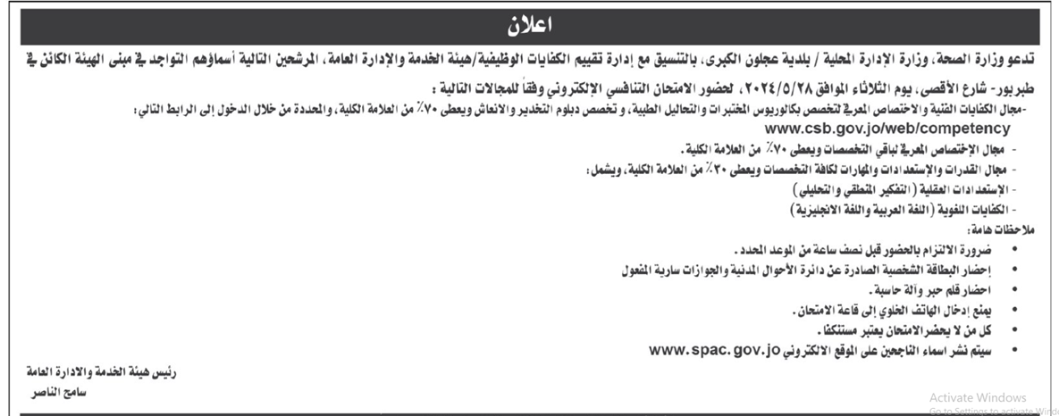 وظائف شاغرة ومدعوون للاختبار التنافسي في الحكومة - أسماء