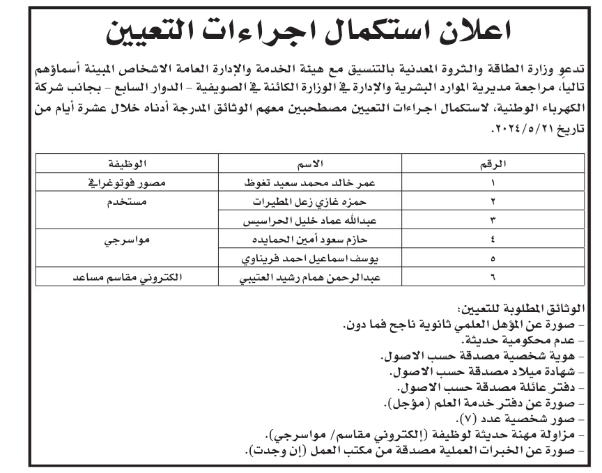 مدعوون لإجراء مقابلات شخصية واستكمال إجراءات التعيين (أسماء)