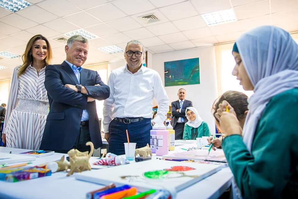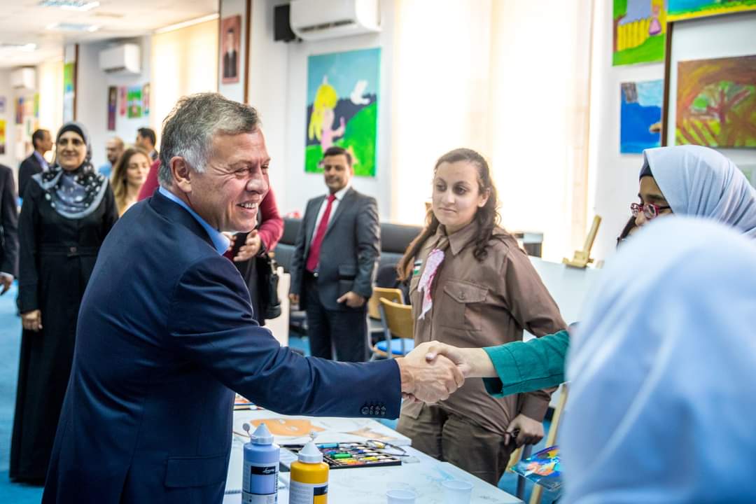 أمضى جلالة الملك عبدالله الثاني وجلالة الملكة رانيا العبدالله، وقتا بين طلاب وطالبات أكاديمية المكفوفين في عمان التابعة لوزارة التربية والتعليم.