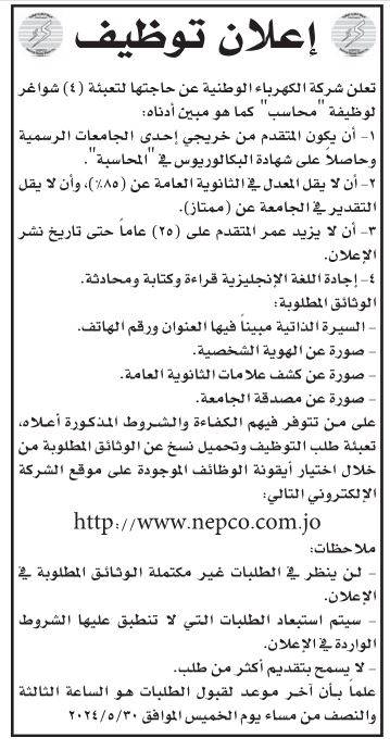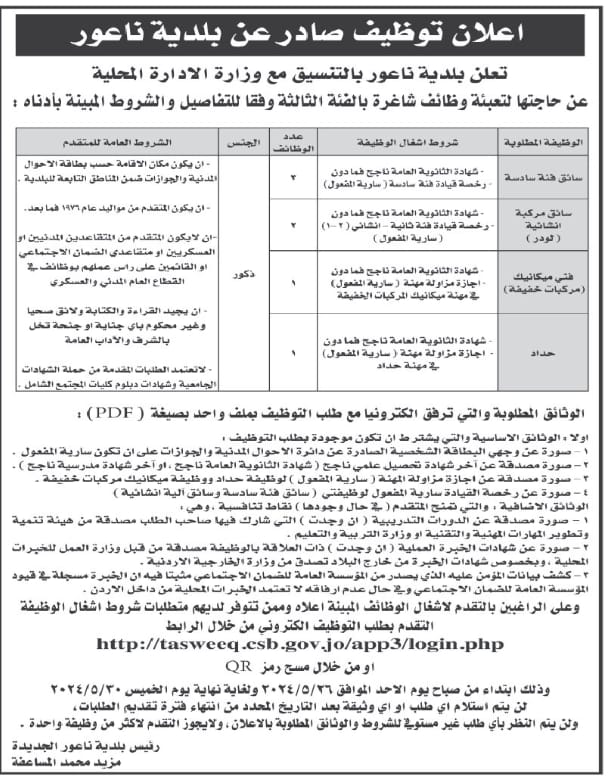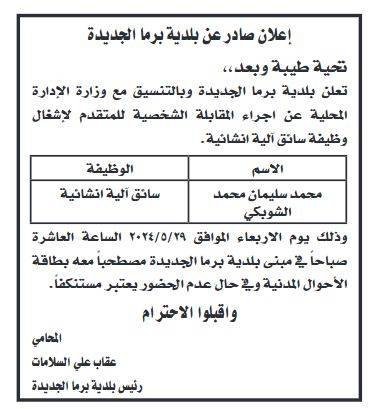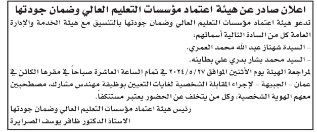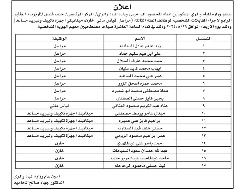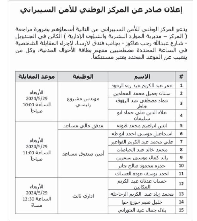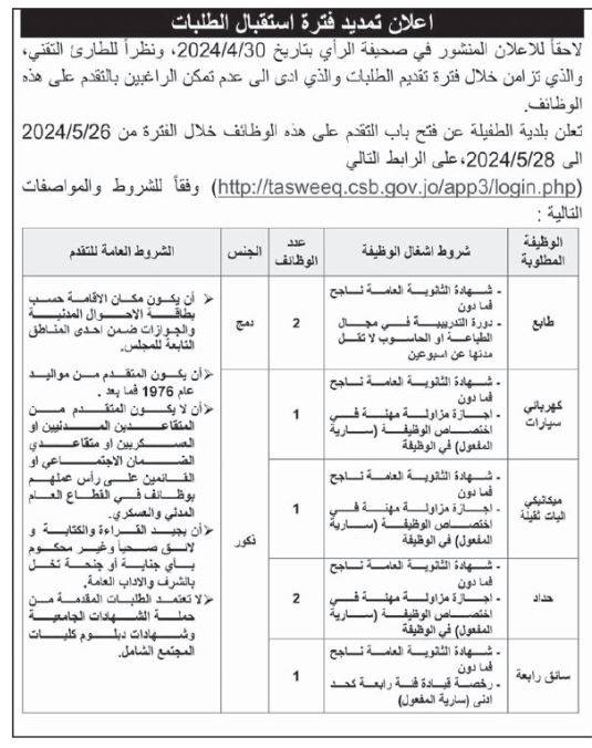 أعلنت عدداً من المؤسسات والبلديات، اليوم الأحد، عن حاجتهم لتعبئة وظائف شاغرة، فيما دعت عددا من المرشحين اجراء المقابلات الشخصية.