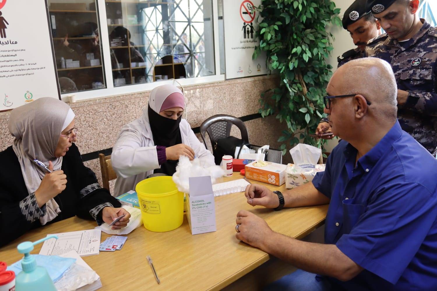 حيث شهدت الحملة حضور كلا من مدير صحة الزرقاء الدكتور خالد عبد الفتاح، أعضاء مجلس محافظة الزرقاء اللامركزية في قضاء الأزرق، مدير جمارك حدود العمري العميد سالم الشلول، مدير مركز حدود العمري العقيد سامر النصراوين، مدير شرطة البادية الوسطى العقيد سامي الرعود، مدير قضاء الأزرق سامي الخلايلة، رئيس بلدية الأزرق يحيى بهجت زين الدين وعدد من مرتبات الأجهزة الأمنية والعسكرية والدفاع المدني، مدير مستشفى الزرقاء الحكومي الدكتور صالح حكمت حماد ومدير مستشفى الأمير فيصل الدكتور ناصر عبدالكريم وبعض رؤساء ووحد مديرية صحة الزرقاء.