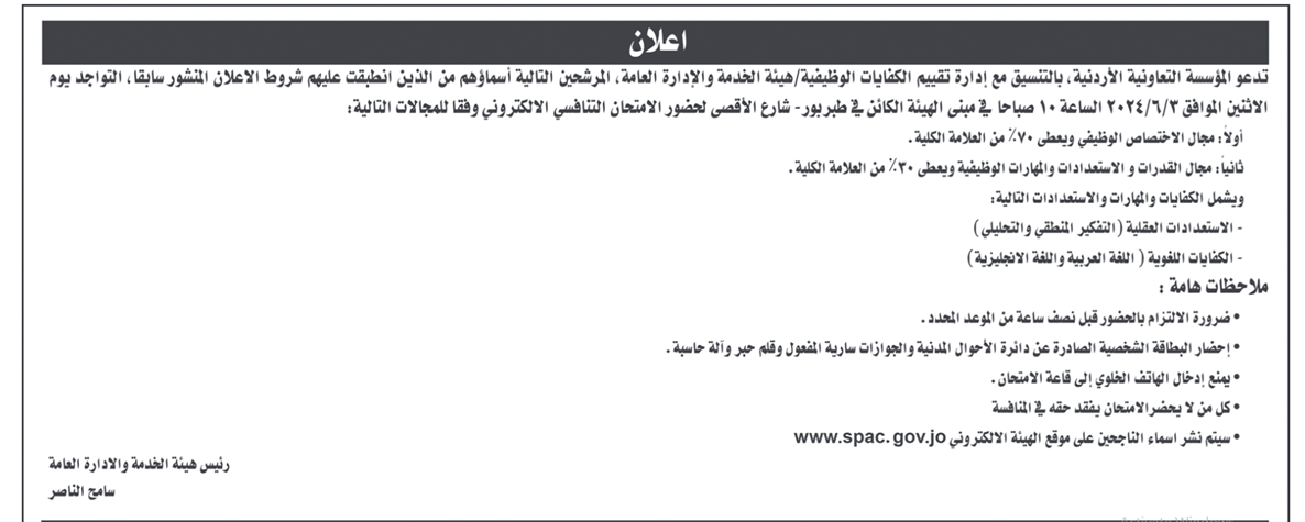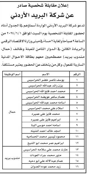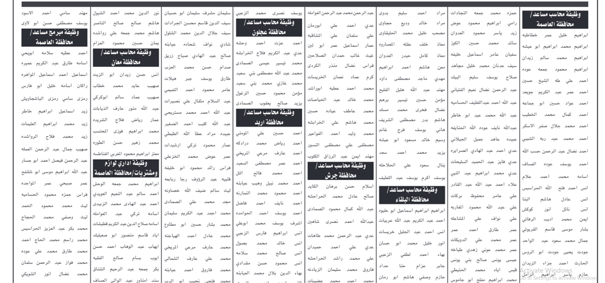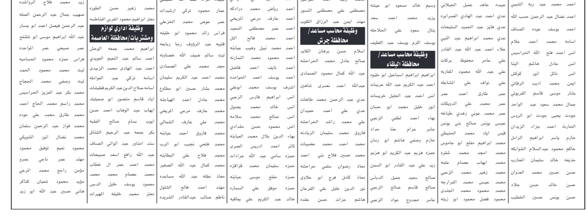دعت وزارات ومؤسسات حكومية، التالية اسماؤهم لإجراء المقابلات الشخصية لغايات استكمال اجراءات التعيين ولتقديم الامتحان التنافسي.