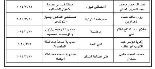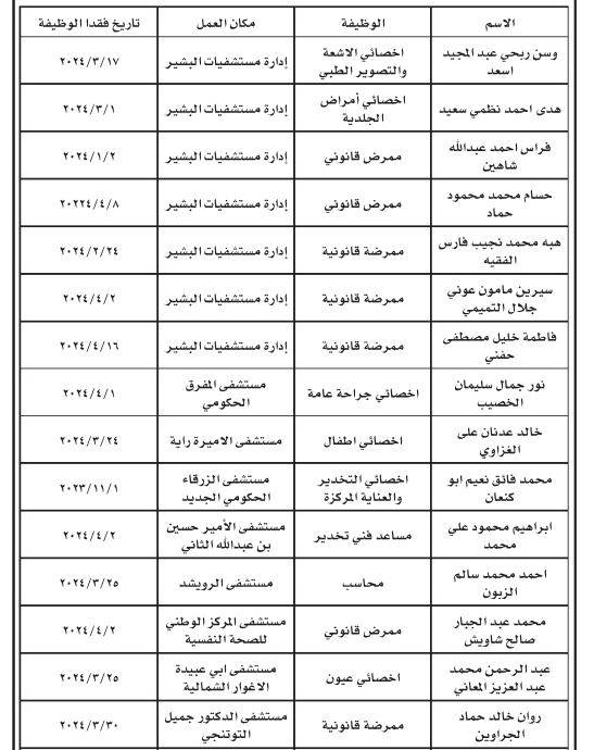 فاقدون لوظائفهم في وزارة الصحة (أسماء)