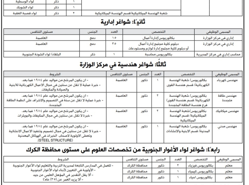 وتاليًا تفاصيل الوظائف والشروط المطلوب إشغالها: