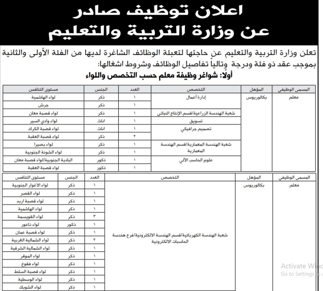 وظائف شاغرة في وزارتي الداخلية والتربية- تفاصيل