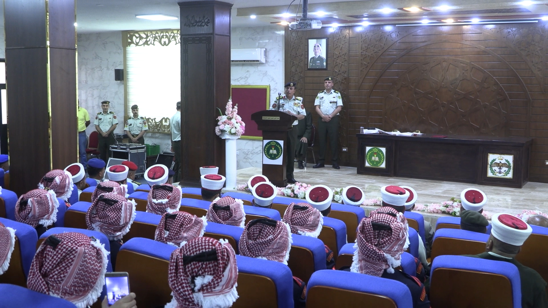 وقال عميد كلية الامير الحسن للعلوم الإسلامية: نحتفل اليوم بتخريج هذه الكوكبة من تلاميذ كلية الامير الحسن للعلوم الاسلامية ونوصيهم بتقوى الله تعالى، وأن يكونوا قدوة صالحة في القوات المسلحة الأردنية ويعملوا على تطوير أنفسهم بمواصلة العلم الشرعي والاطلاع على كل جديد لنجاح مهمتهم الشريفة في الوعظ والإرشاد، وتلا عميد الكلية قرار تخريج تلاميذ الكلية ومنحهم درجة البكالوريوس في الفقه وأصوله والعلوم العسكرية وقرار ترفيعهم إلى رتبة مرشح، مبيناً ان الجندية الحقه شرف عظيم ومكانة مرموقة للدفاع عن هذا الوطن