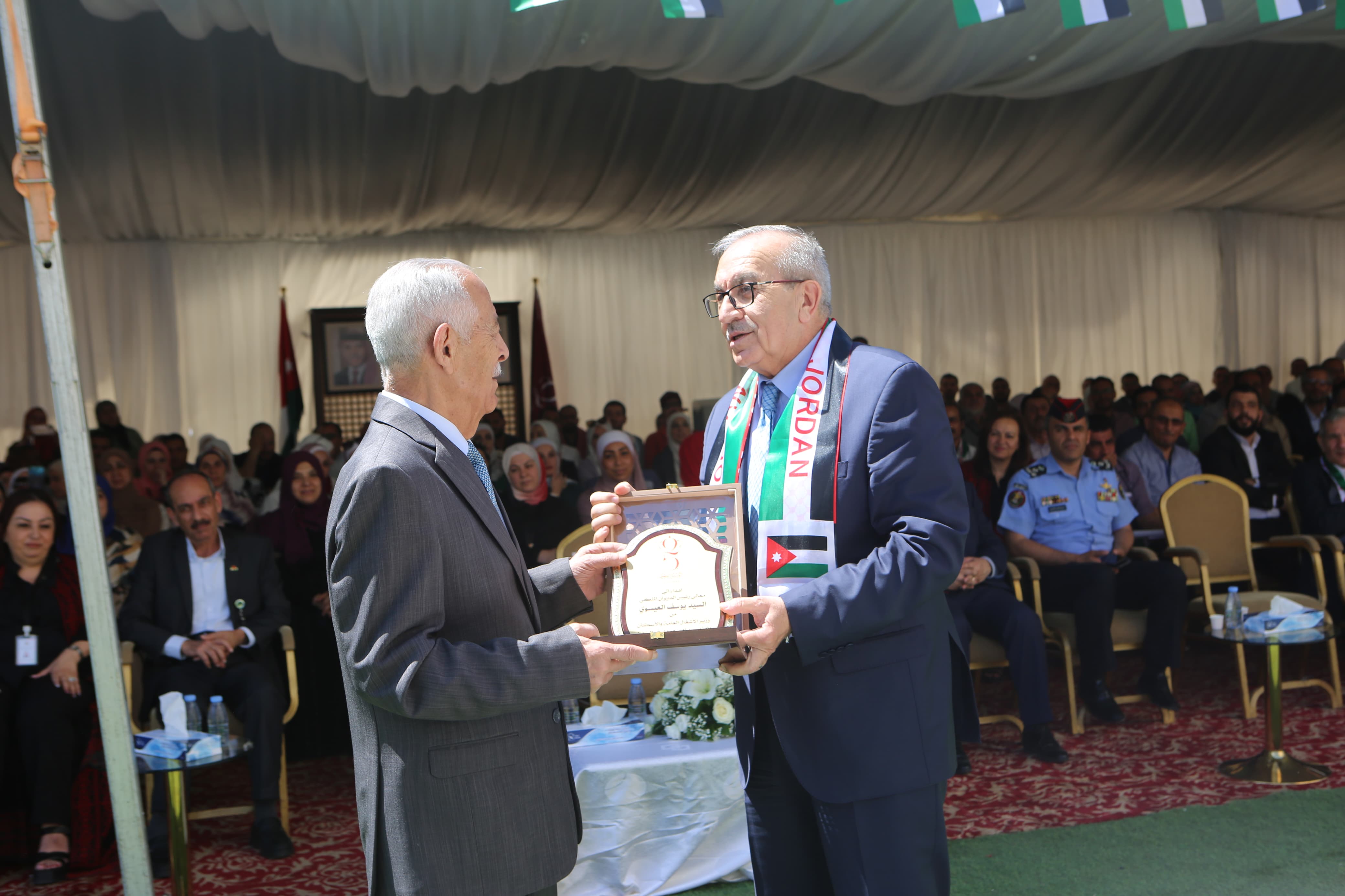 وأضاف العيسوي أن الأردن سيبقى، على الدوام، عصيا في وجه التحديات يؤدي رسالته الإنسانية، ثابت على مواقفه الأصيلة، ويدافع عن قضايا أمته العربية والإسلامية في مختلف المحافل.وفي كلمته خلال الاحتفال أكد وزير الأشغال المهندس ماهر أبو السمن أن الأسرة الأردنية تحتفل بهذه المناسبات وسط انجازات كبيرة حققها الأردن بقيادة جلالة الملك عبدالله الثاني الحكيمة في مختلف المجالات.