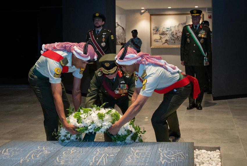 زار جلالة الملك عبدالله الثاني، القائد الأعلى للقوات المسلحة، يرافقه سمو الأمير الحسين بن عبدالله الثاني ولي العهد، صرح الشهيد بمناسبة ذكرى الثورة العربية الكبرى ويوم الجيش .