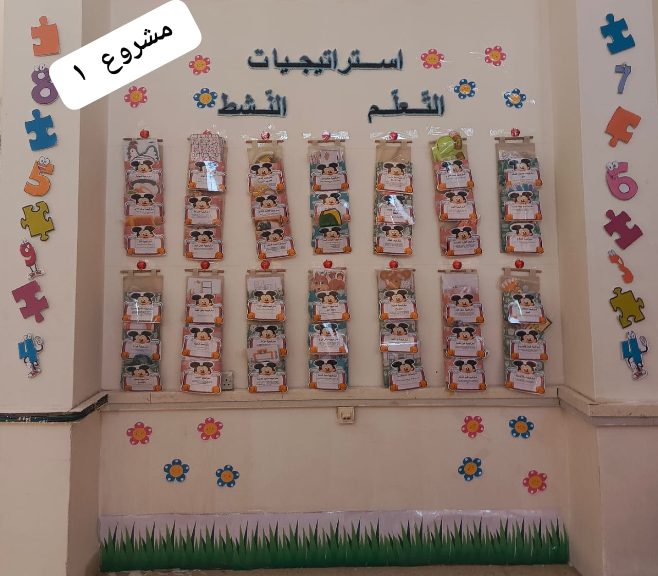 تقوم فكرة المشروع على تصميم أكبر مجموعة من استراتيجيات التعلم النشط المجلدة حراريا لإمكانيه الكتابة عليها اكثر من مرة وتجميعها في حائط جيوب كمكتبة صغيرة بكتابة طريقة استخدام كل استراتيجية عليها بشكل مفصل ليسهل على المعلمة استخدامها وتفعيلها في الحصص الصفية لتكون اكثر تشويقا وتفاعلا وقريبة لفهم الطلاب