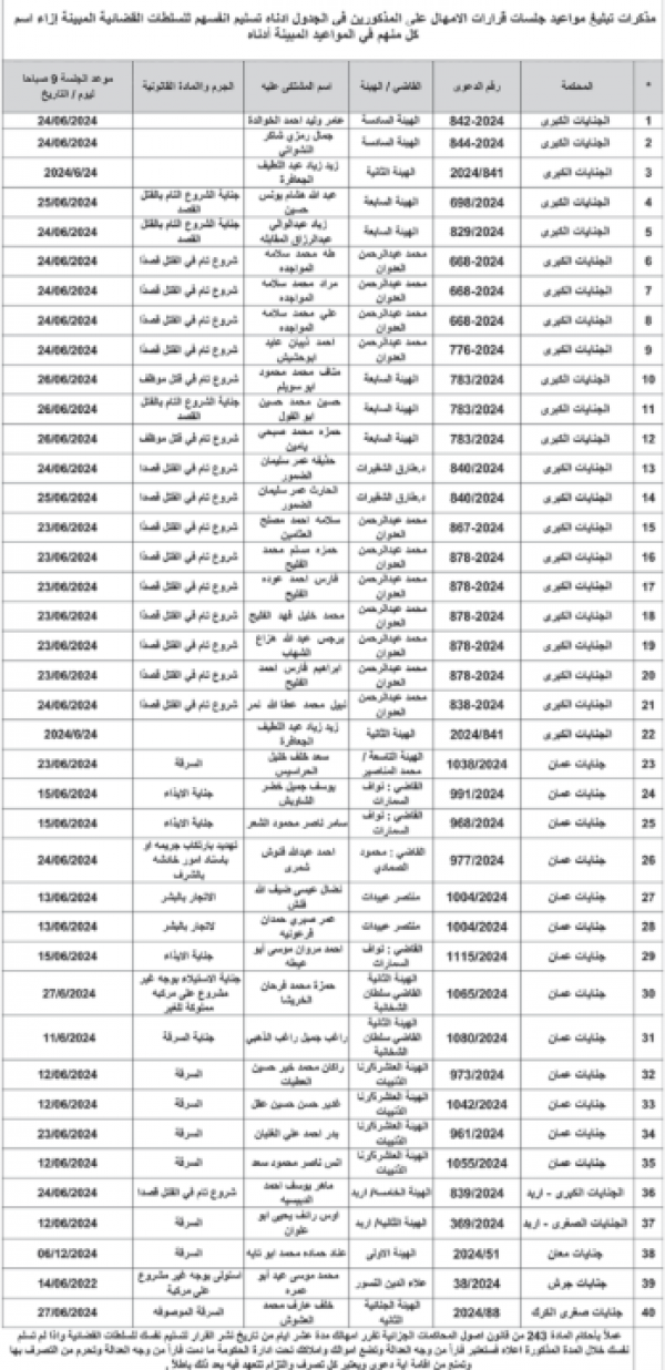 محاكمات وقرارات إمهال لمطلوبين للقضاء (أسماء)