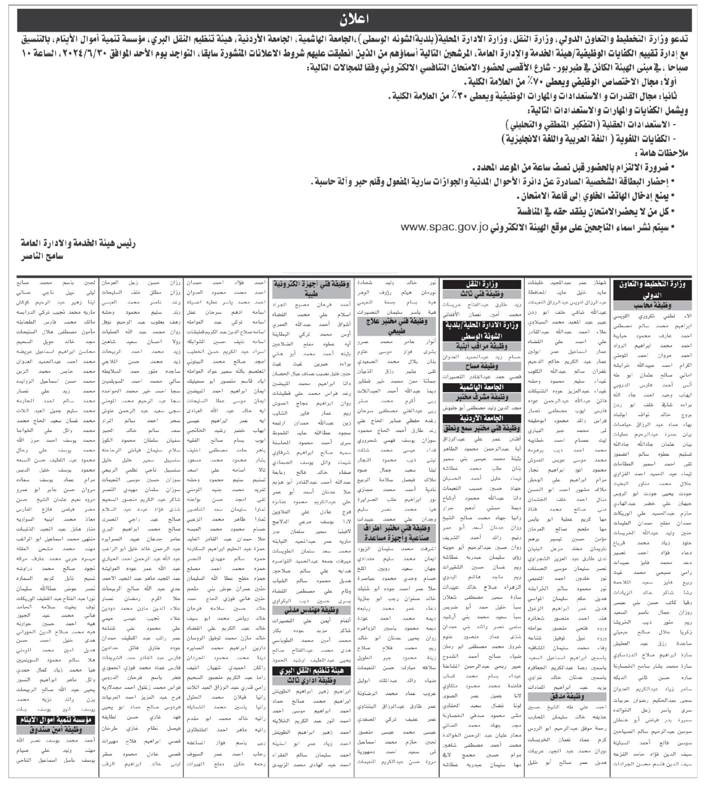 دعت وزارات ومؤسسات وهيئات رسمية، بالتنسيق مع إدارة تقييم الكفايات الوظيفية/ هيئة الخدمة والإدارة العامة، مرشحين لحضور الامتحان التنافسي الإلكتروني.
