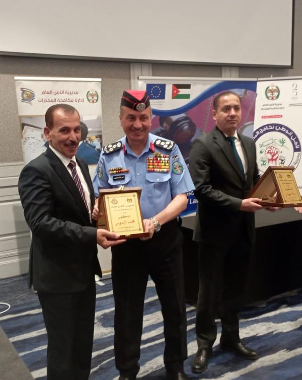وجرى خلال المؤتمر تكريم عدد من الشخصيات والمؤسسات التي تساهم بفاعلية في التصدي لافة المخدرات وتعميق الوعي الاجتماعي بمخاطرها، حيث سلم العميد انور الطراونه مساعد مدير الامن العام وبحضور العميد حسان القضاة مدير إدارة مكافحة المخدرات درع ادارة مكافحة المخدرات للدكتور محمد البدور رئيس الجمعية الوطنية للتوعية والتطوير والمؤتمر العام للشباب تقديرا لدوره الاعلامي في التوعية المجتمعية بمكافحة المخدرات ومبادرته في تنظيم وعقد المؤتمر الوطني لمكافحة المخدرات وكذلك مشاركته بتقديم ورقة عمل خلال فعاليات المؤتمر العلمي لادارة مكافحة المخدرات الذي تم تنظيمه برعاية اللواء الدكتور عبيدالله المعايطة مدير الامن العام تحت شعار " لاجل الوطن نكافح المخدرات" والذي شارك فيه شخصيات رسمية ودينية وإعلامية وتحدث فيها الدكتور البدور عن دور الشباب والمجتمعات في التصدي لافة المخدرات .