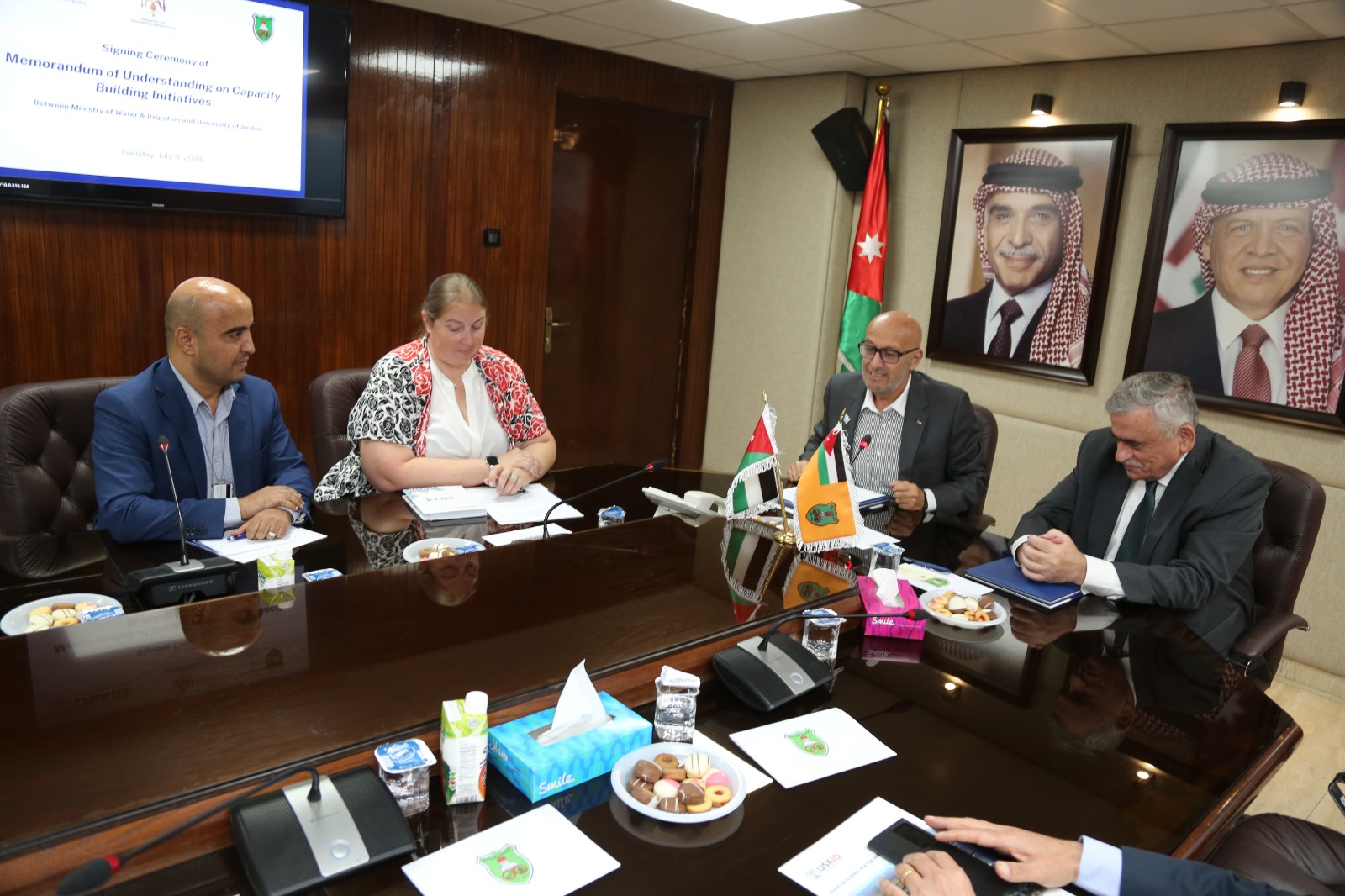 وقع وزير المياه والري المهندس رائد أبو السعود ورئيس الجامعة الاردنية الاستاذ الدكتور نذير عبيدات  بحضور ممثلي الوكالة الامريكية للتنمية الدولية USAID و أمين عام وزارة المياه والري الدكتور جهاد المحاميد وعدد من عماد كليات الجامعة الأردنية والمعنيين   مذكرة تفاهم بين الوزارة بسلطتيها والجامعة لتعزيز التعاون بينهما وبين الوزير ان هذه الاتفاقية تأتي تنفيذا للتوجيهات الملكية السامية في التطوير والتحديث وتعزيز وتدعيم روابط التعاون بين المؤسسات الحكومية ومؤسسات البحث العلمي والجامعات خاصة في مجالات المياه وبحوثها والتدريب والمشاركة بالمشاريع العلمية وتنفيذ مشاريع مشتركة والادارة الحصيفة والمستدامة وانشاء المختبرات المبتكرة لمواجهة  لمواجهة التحديات الكبيرة التي يواجهها قطاع المياه وتتجلى في نقص هذا المورد الهام وتأكيدا على النهج الحكومي المتواصل برفع كفاءة الاستخدام المائي وتطوير الادارة المائية لتعظيم فوائد الاستخدام للمياه في البلاد .