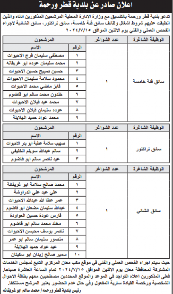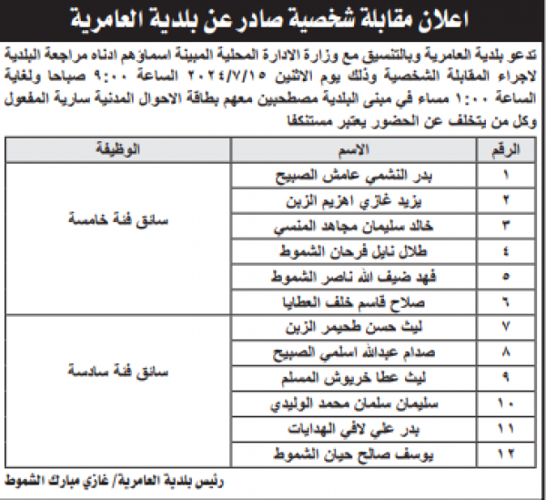 وكما دعت مؤسسات حكومية آخرين لإجراء المقابلات الشخصية لغايات استكمال اجراءات التعيين.