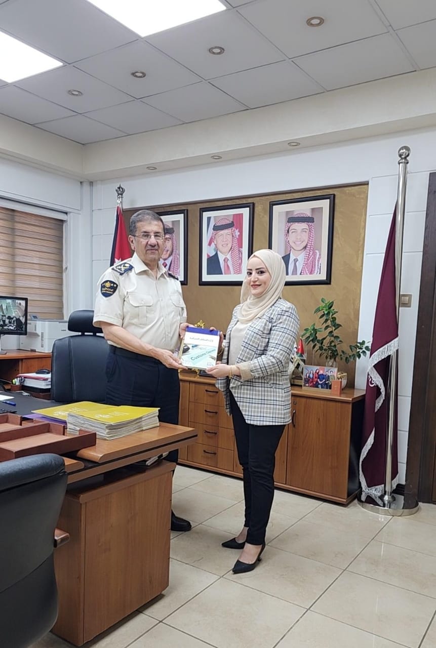بحضور مدير مكافحة التهريب الجمركي العميد جمارك رائد الشياب، حيث قامت بتسليمه كتابها رقم ( 2 ) عن إدارة المخاطر الجمركية بدائرة الجمارك والصادر حديثاً عن دار الثقافة للنشر والتوزيع والمعتمد لتدريسه في الجامعات والمعاهد الأردنية.