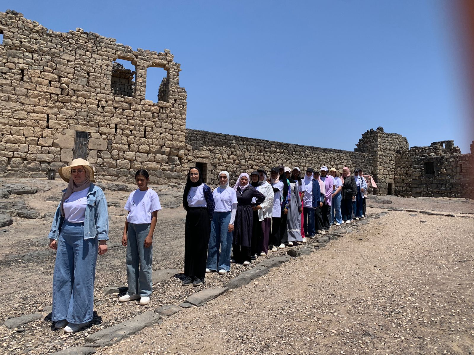 وتضمنت فعاليات المعسكر زيارةً إلى قلعة الأزرق، وتعرفت المشاركات على مرافق القلعة، وأهميتها التاريخية والسياحية، والجهود الوطنية في المحافظة على المواقع السياحية التي تشكل محطات مهمة في تاريخ الأردن، وأهمية دور الشباب في المحافظة على المواقع السياحية والترويج لها.