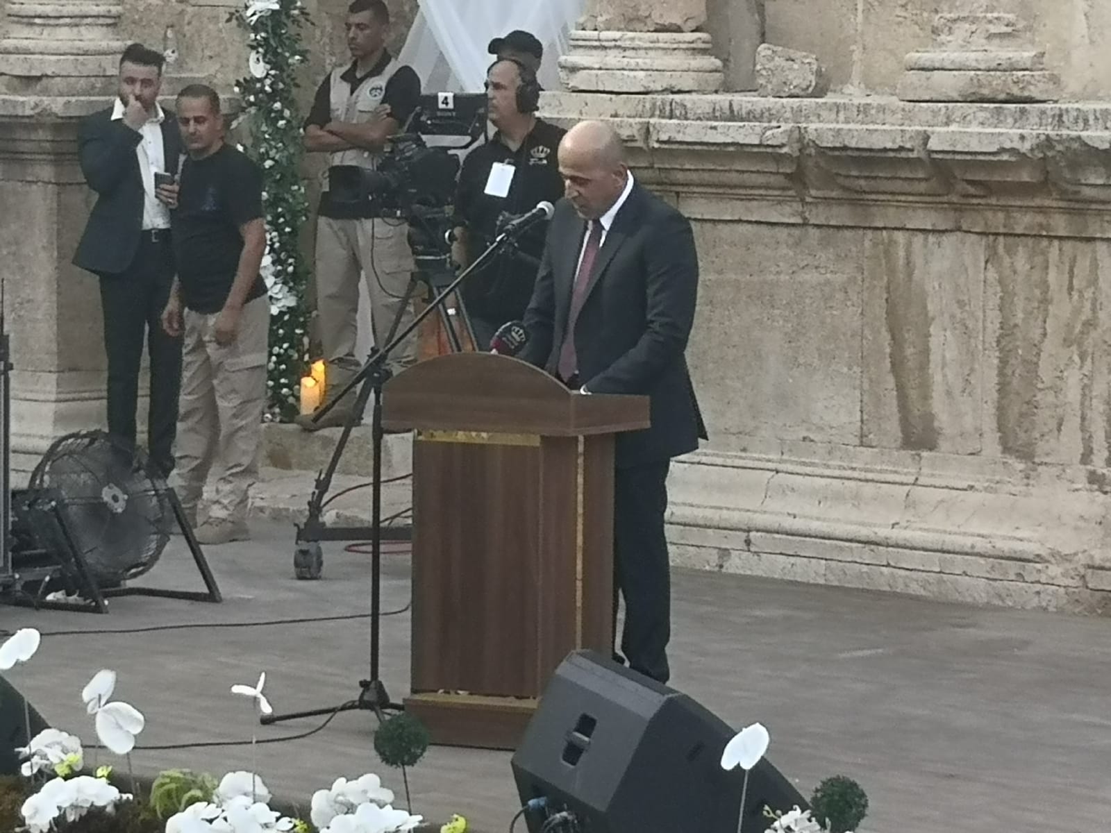 بدوره، رفع رئيس بلدية جرش احمد هاشم العتوم، أسمى آيات الشكر لجلالة الملك عبدالله الثاني لرعايته السامية للمهرجان بدورته ال 38 وانتداب رئيس الوزراء لايقاد شعلة المهرجان .