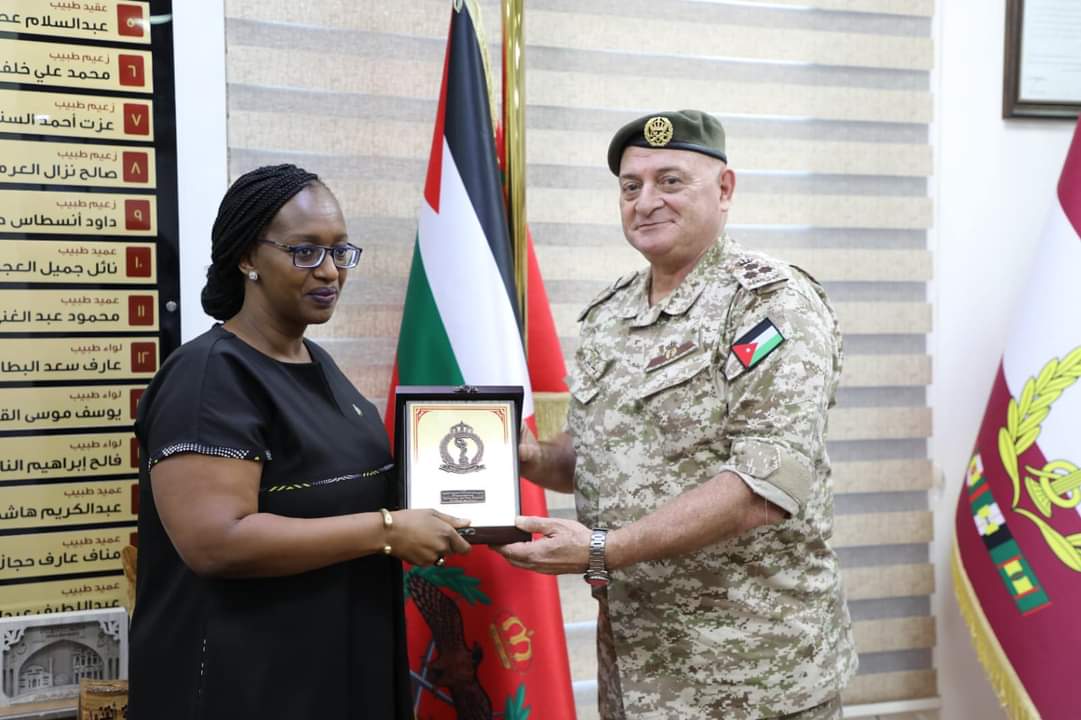 وفي نهاية الزيارة، قدم العميد الطبيب زريقات درع الخدمات الطبية الملكية للسفيرة.