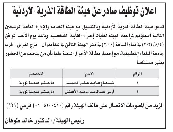 أعلنت عدداً من الوزارات والمؤسسات، اليوم الأربعاء، عن حاجتهم لتعبئة وظائف شاغرة، فيما دعت عددا من المرشحين لاجراء المقابلات الشخصية وحضور الامتحان التنافسي.
