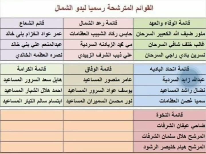 القوائم المترشحة عن بدو الشمال لخوض الانتخابات (أسماء)