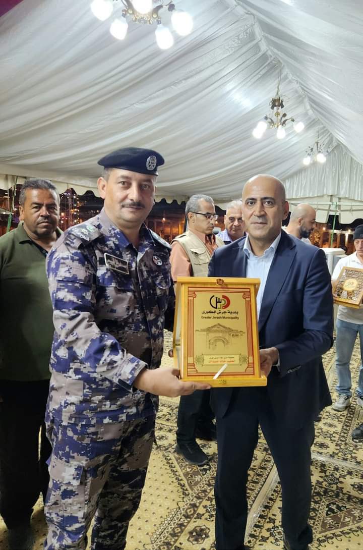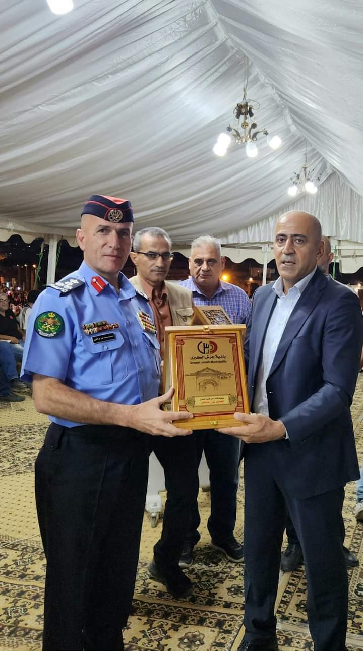كرم رئيس بلدية جرش الكبرى احمد هاشم العتوم ليل امس السبت محافظ جرش د فراس الفاعور وقادة الأجهزة الأمنيّة تقديرا لدورهم المميز الذي قدموه خلال أيام مهرجان جرش للثقافة والفنون 2024 وتمنى العتوم دوام التقدم لاجهزتنا الامنيه في ضل صاحب الجلاله الملك عبدالله الثاني ابن الحسين وشكرهم على ما قدموه من عمل رائع لزوار المهرجان والتعامل الحسن مع رواد المهرجان.