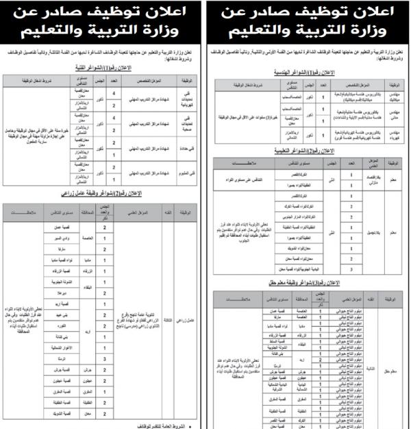 : اعلنت وزارة التربية والتعليم الاثنين، عن حاجتها لتعبئة الوظائف الشاغرة لديها من الفئة الاولى والثانية.