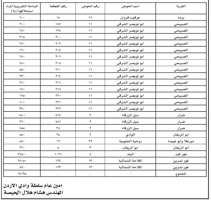 أعلنت سلطة وادي الأردن اليوم الثلاثاء أنها قررت الاستملاك والحيازة الفورية بطريق الاستيلاء المطلق لأجزاء من قطع أراض لغايات سلطة وادي الأردن لمسار الخط الناقل المار من تلال الذهب إلى قناة الملك عبد الله، وذلك استنادا إلى قانون تطوير وادي الأردن.