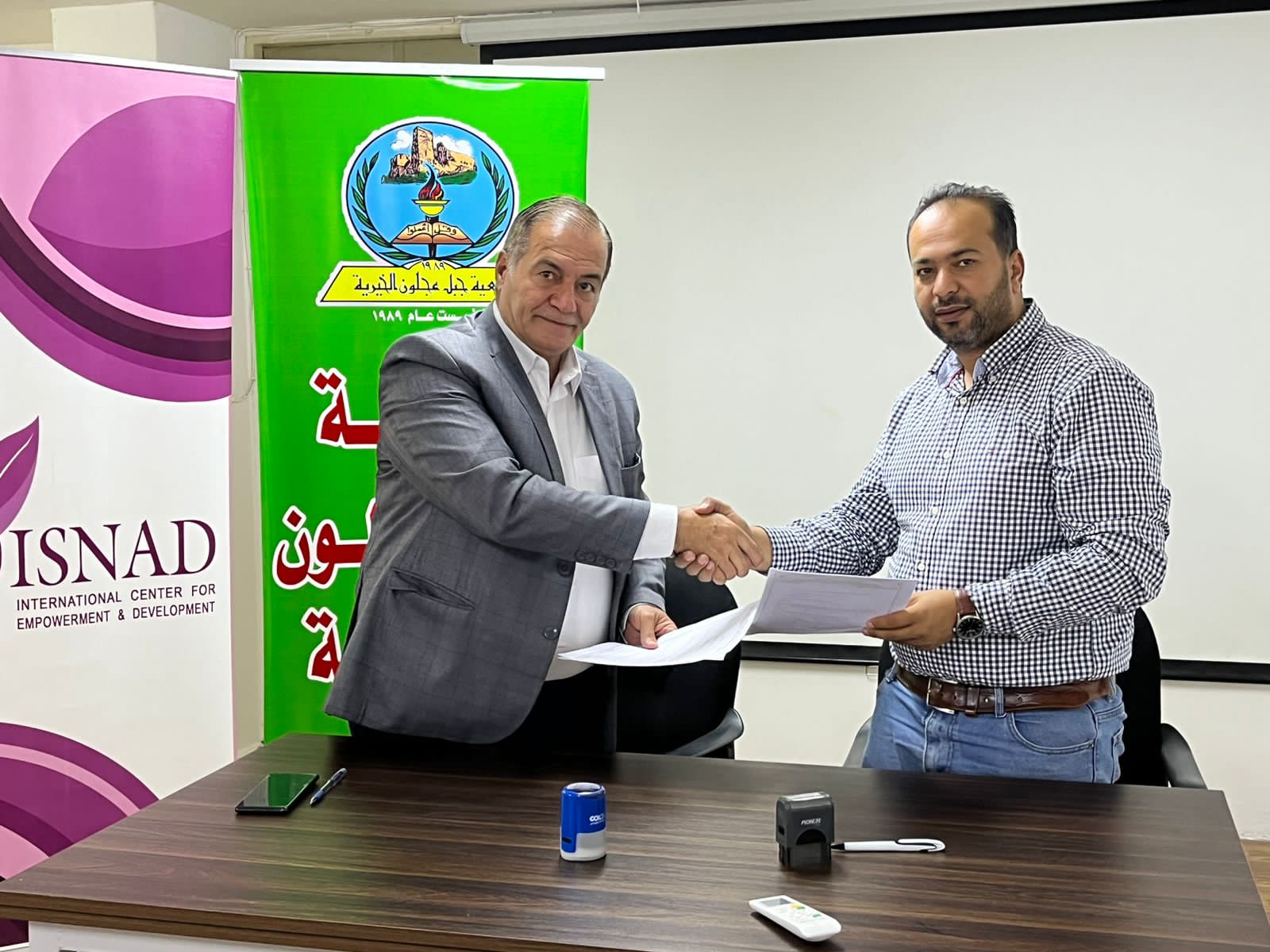وقعت جمعية جبل عجلون الخيرية ومركز إسناد الدولي للتمكين والتنمية اتفاقية تعاون تعزيز خيارات النقل الآمن للنساء في المنطقة ووقع الاتفاقية رئيس حمعية جبل عجلون الخيرية الصحفي محمد سالم القضاة والرئيس التنفيذي لمركز إسناد الدولي للتمكين والتنمية عبدالله الحسبان .