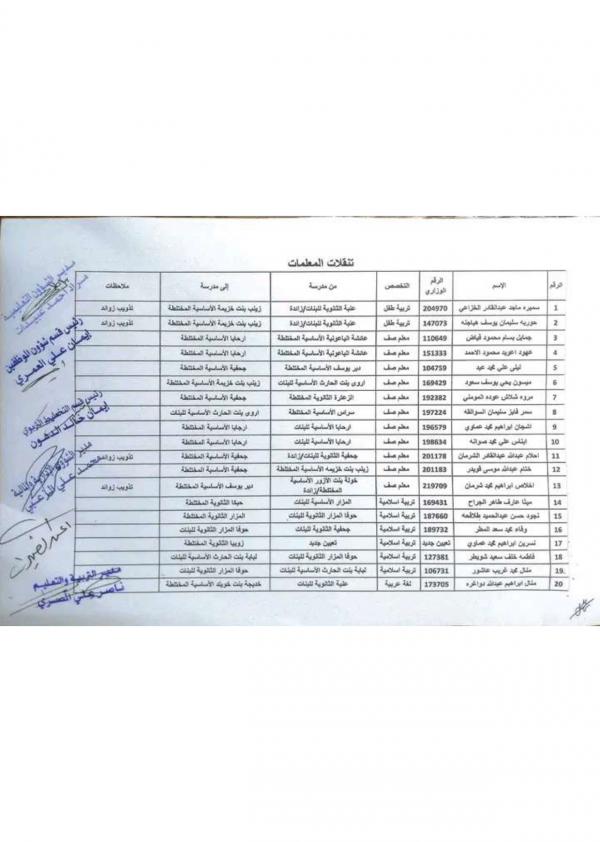 تنقلات داخلية لمعلمين وموظفين في تربية المزار الشمالي (أسماء)