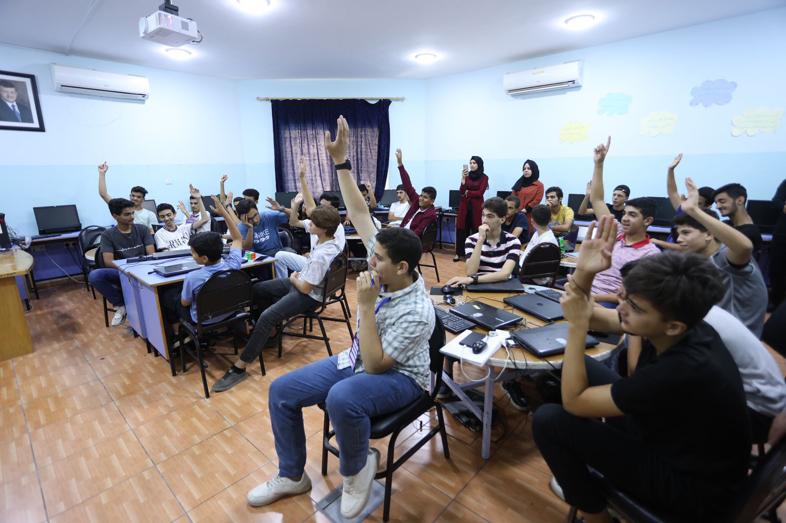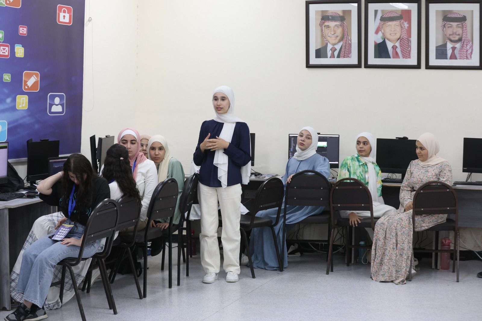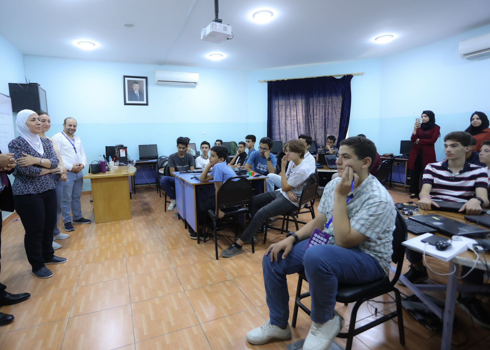 قامت الأمين العام لوزارة الاقتصاد الرقمي والريادة، سميرة الزعبي بزيارة مدراس الملك عبد الله الثاني للتميز والزهراء الثانوية الشاملة للبنات في محافظة اربد ومدرسة عبد الله الثاني للتميز في المقابلين بالعاصمة عمان لاطلاع على سير عمل مشاريع الطلبة ضمن النادي الصيفي لتصميم وتطوير الألعاب الإلكترونية لطلبة المدارس الحكومية.