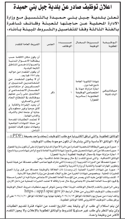 أعلنت عدداً من البلديات والمؤسسات، اليوم الأحد، عن حاجتهم لتعبئة وظائف شاغرة، فيما دعت عددا من المرشحين لاجراء المقابلات الشخصية.