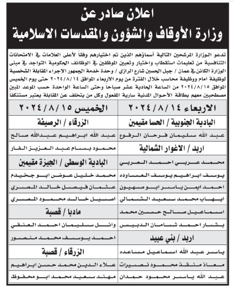 وظائف شاغرة ومـدعوون لإجراء مقابلات شخصية - أسماء