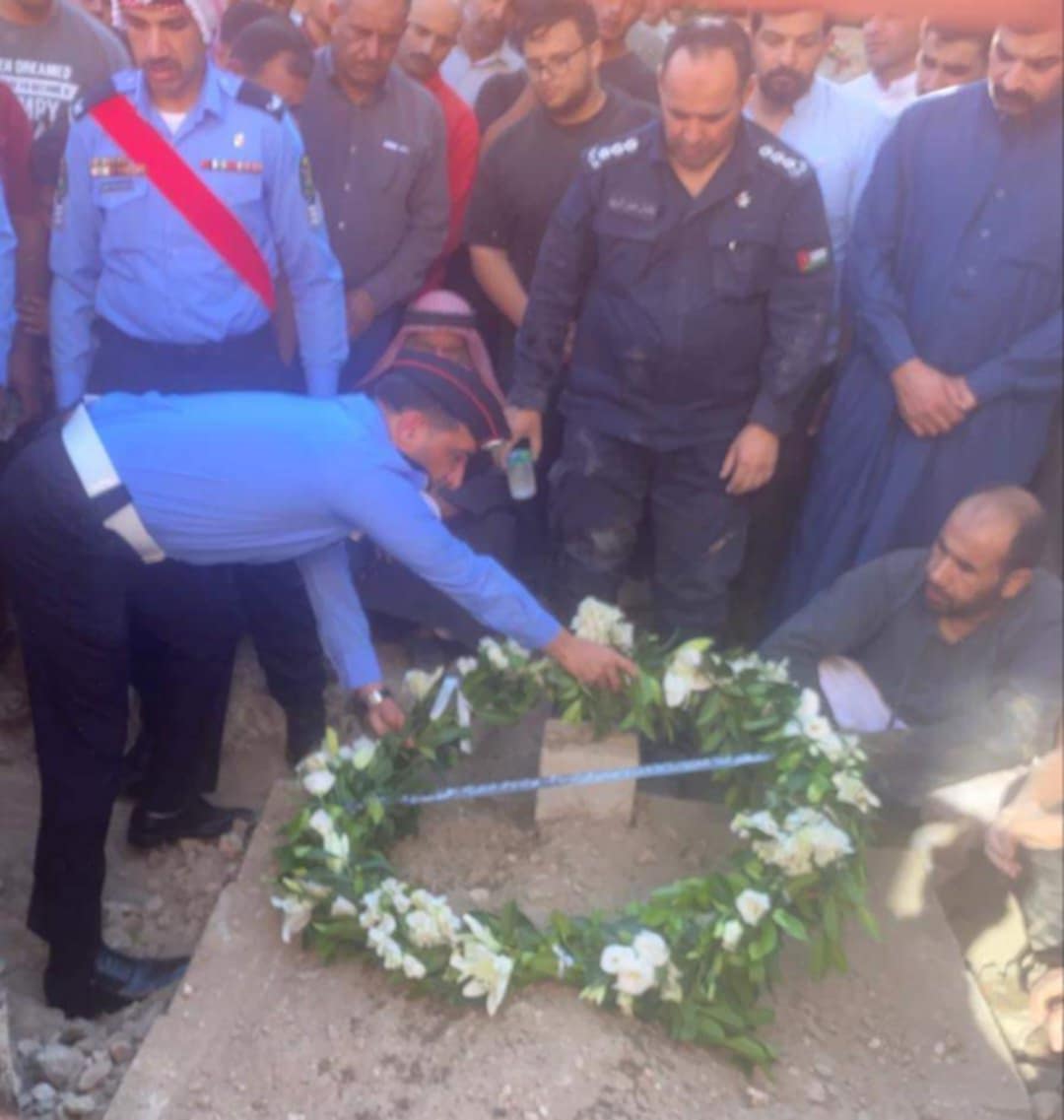 وشارك في تشييع الجثمان مدير شــرطـــة محافظة المفرق العميد عوض اللبابدة ، وعدد من ضباط وضباط صف وأفراد مديرية الأمن العام من مختلف التشكيلات.