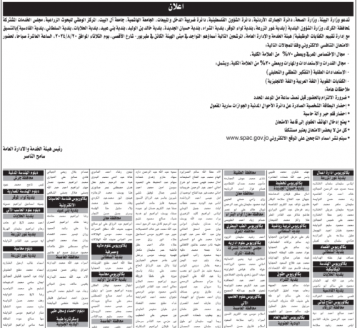 وزارات ومؤسسات حكومية تدعو مرشحين للامتحان التنافسي (أسماء)
