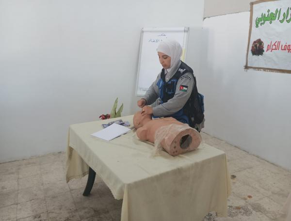 واشتملت فعاليات المعسكر، التي استمرت ثلاثة أيام، محاضرة عن الإسعافات الأولية قدمتها الملازم أوصاف العجالين، التي أكدت خلالها على أهمية تعزيز الثقة في التعامل مع الحالات المختلفة، بما في ذلك تقديم الإسعافات الأولية للحالات المرضية وكيفية التعامل مع الإصابات في مراحلها الأولى.