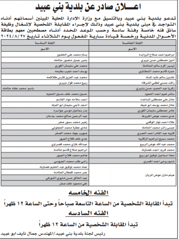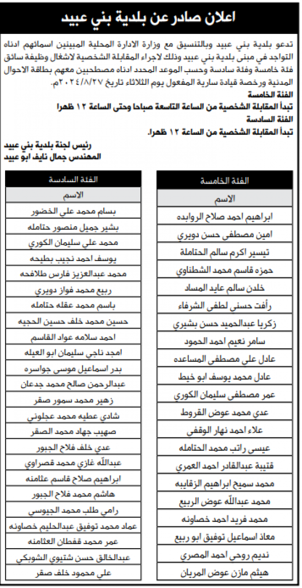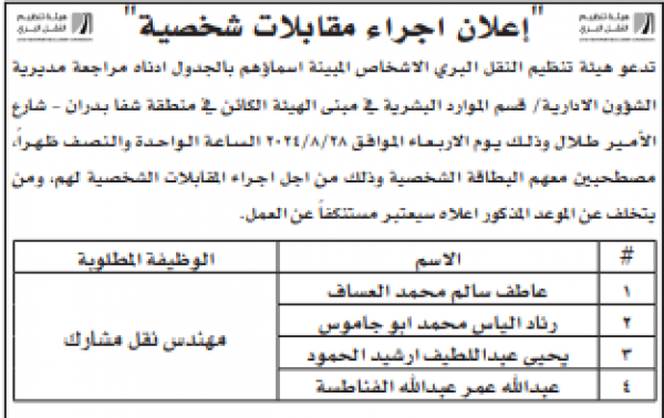 شواغر ومدعوون للمقابلات (أسماء)