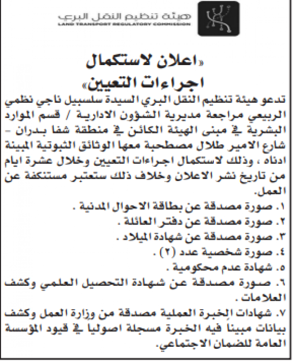 وكما أعلنت عدد من المؤسسات عن توفر شواغر لديها.