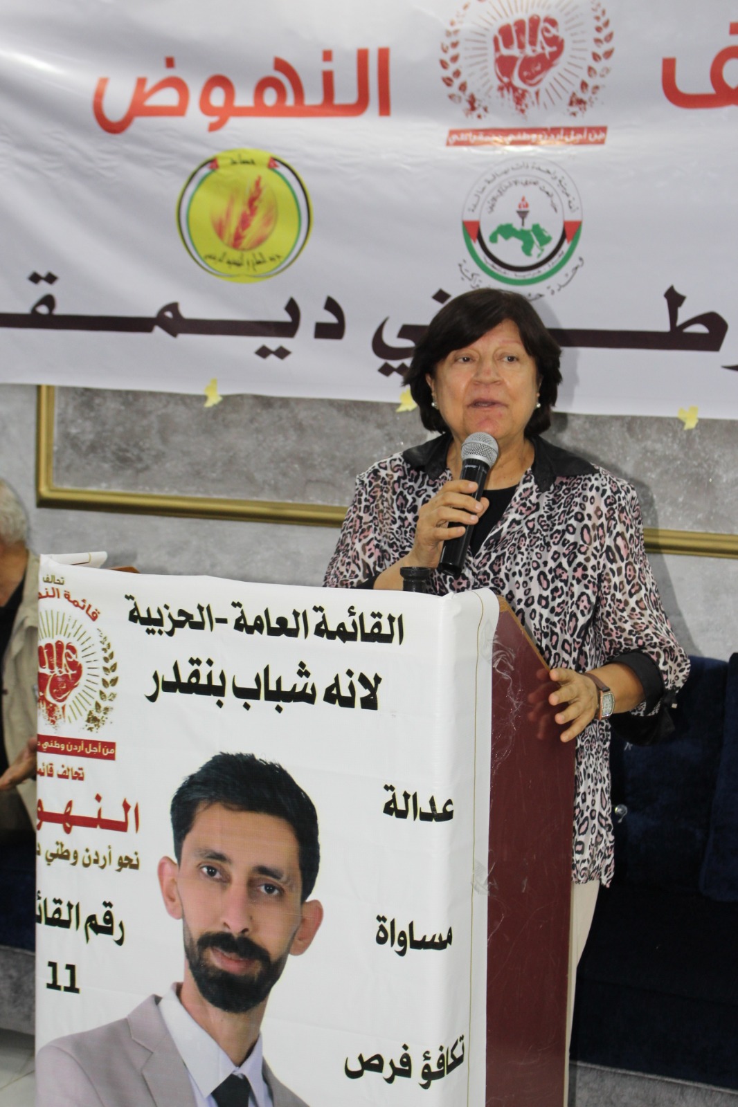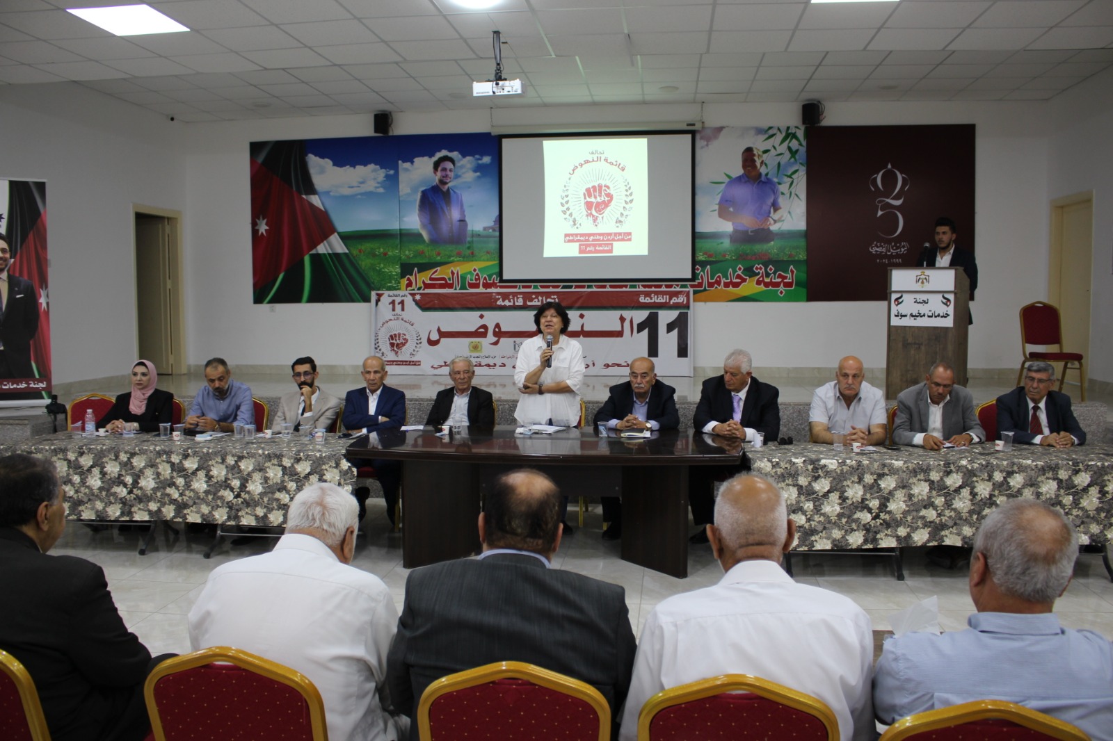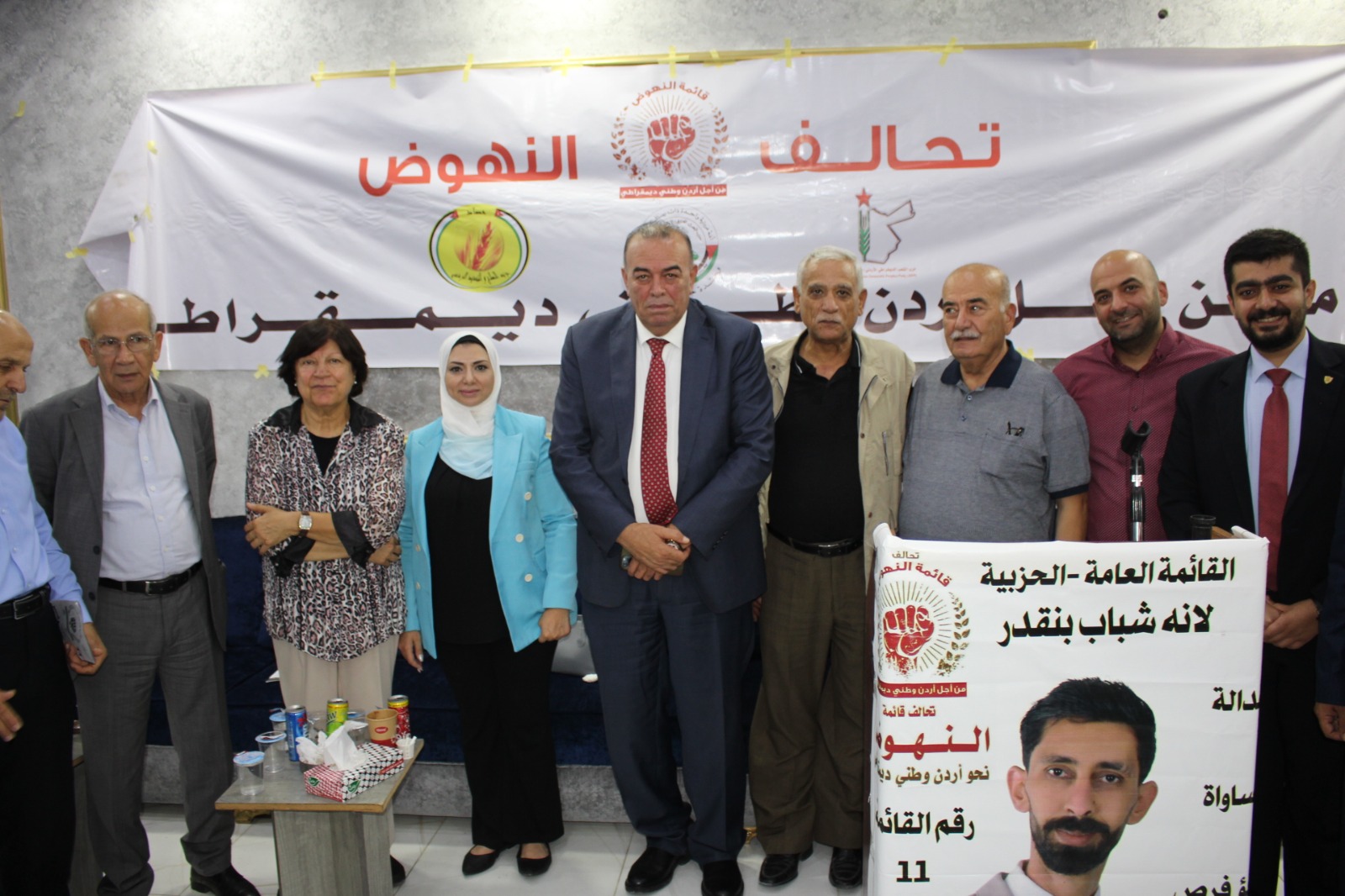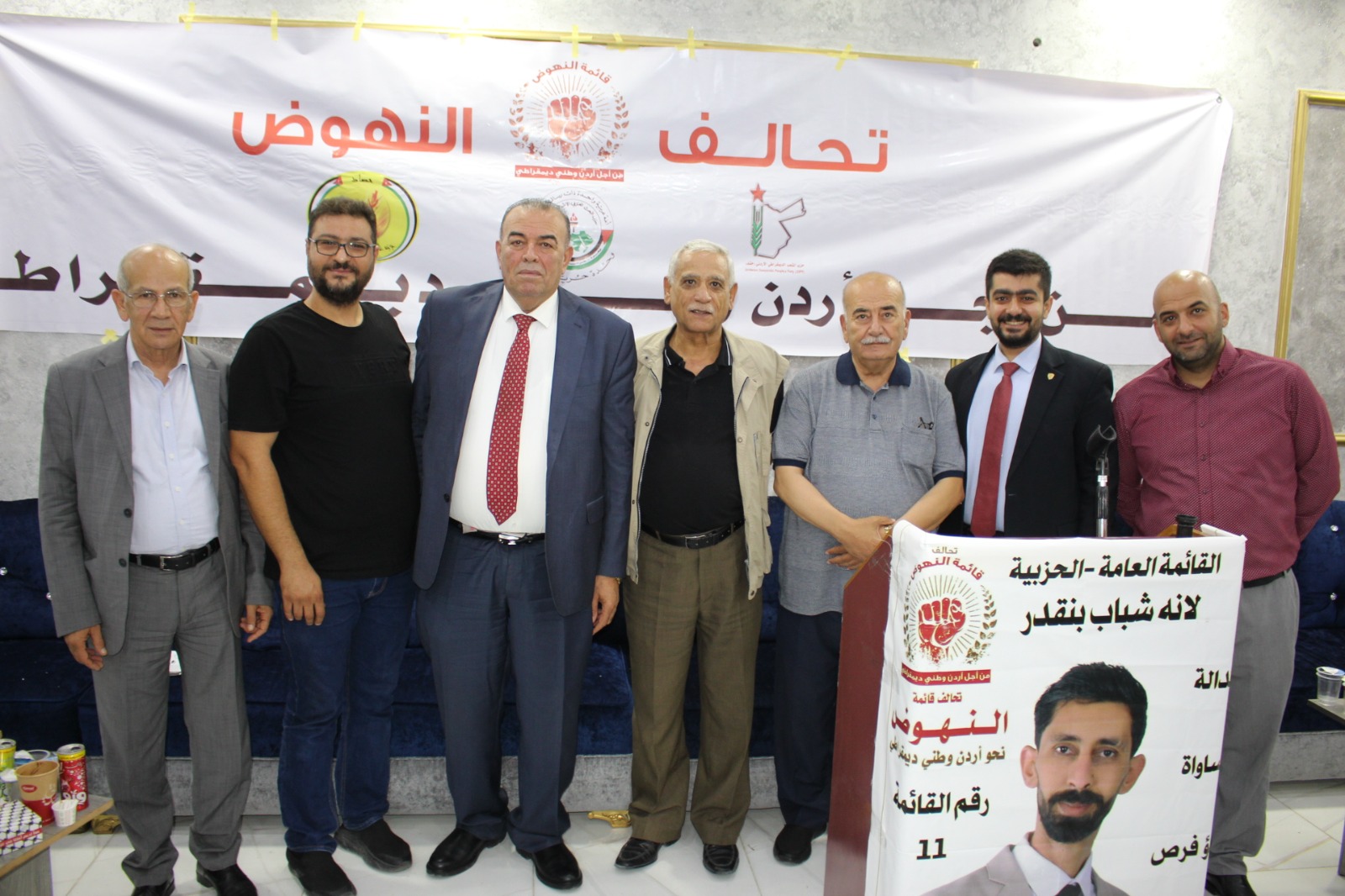 باسمي وباسم تحالف قائمة النهوض، نحييكم ونشكر حضوركم واهتمامكم، مؤكدين لكم اننا جميعا شركاء في هذه المعركة الديمقراطية، من اجل اردن مزدهر وقادر على توفير العيش الآمن الكريم لجميع أبنائه، ومن اجل انتخاب مجلس نواب قادم يحمل سمات المجلس التشريعي القادر على تمثيل جميع فئات الشعب الأردني دون استحواذ ولا إقصاء.